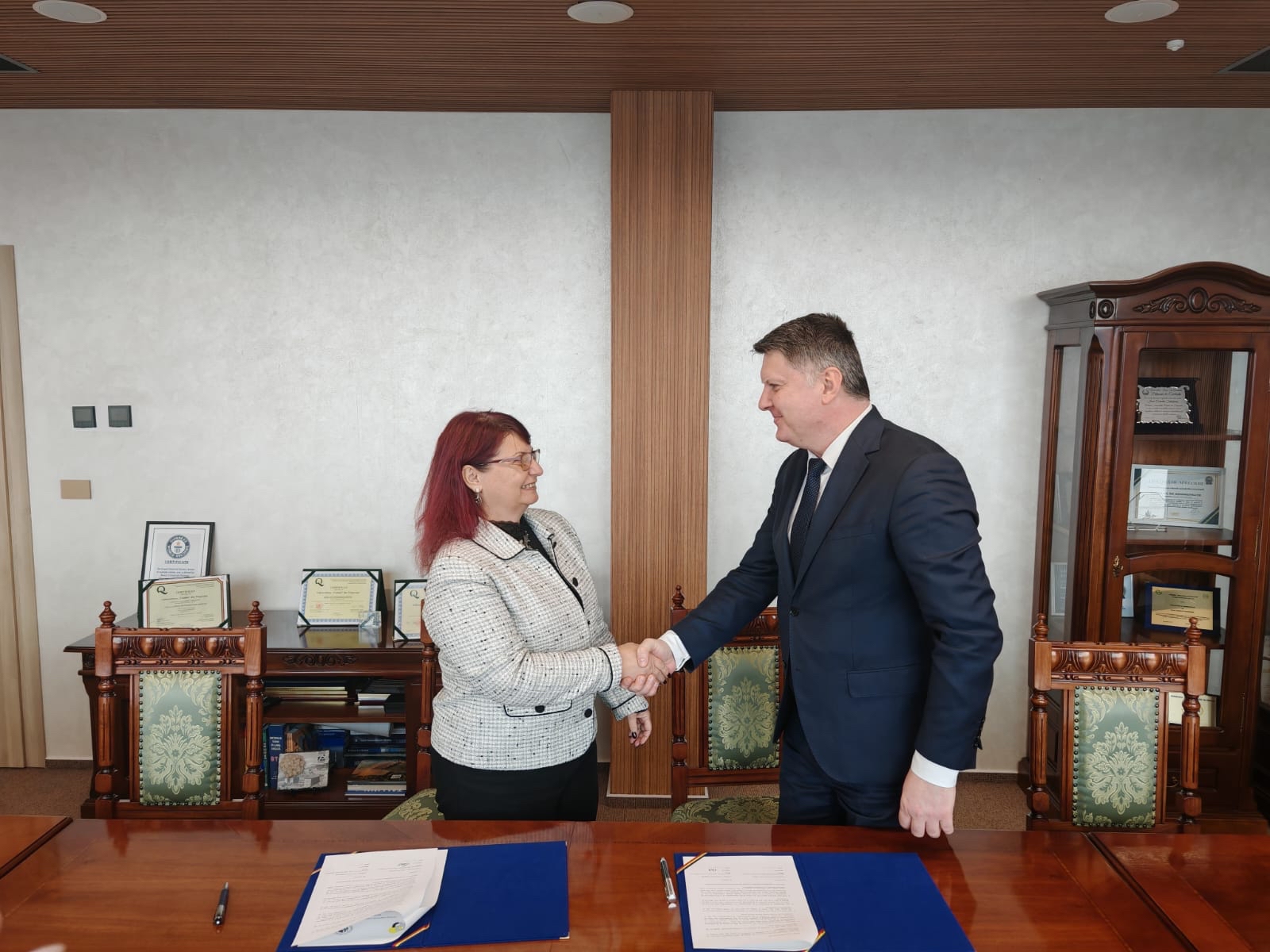 Today, February 12th , 2026, at the university of Valachia in Targoviste, Romania, a memorandum of cooperation was signed between the University of Ruse and the Romanian higher education institution. The document was signed by the Rector of the University of Ruse, Associate Professor Desislava Atanasova, PhD, and the Rector of Valachia University, Professor Ioan Corneliu Salisteanu, PhD.